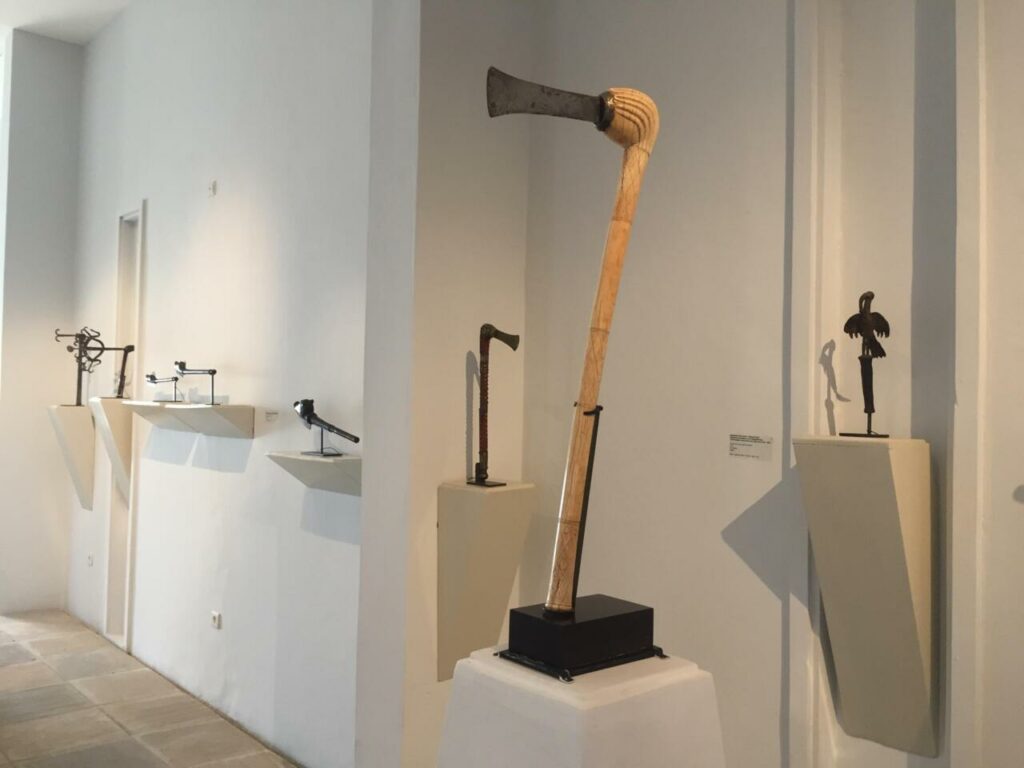 Le musée de la Récade permet aussi de découvrir l’art royal béninois au-delà du sceptre : sculptures sur bois, textiles, objets rituels et pièces rares. Les collections reflètent la finesse des techniques, la puissance symbolique des formes et l’importance du sacré dans l’organisation du pouvoir.